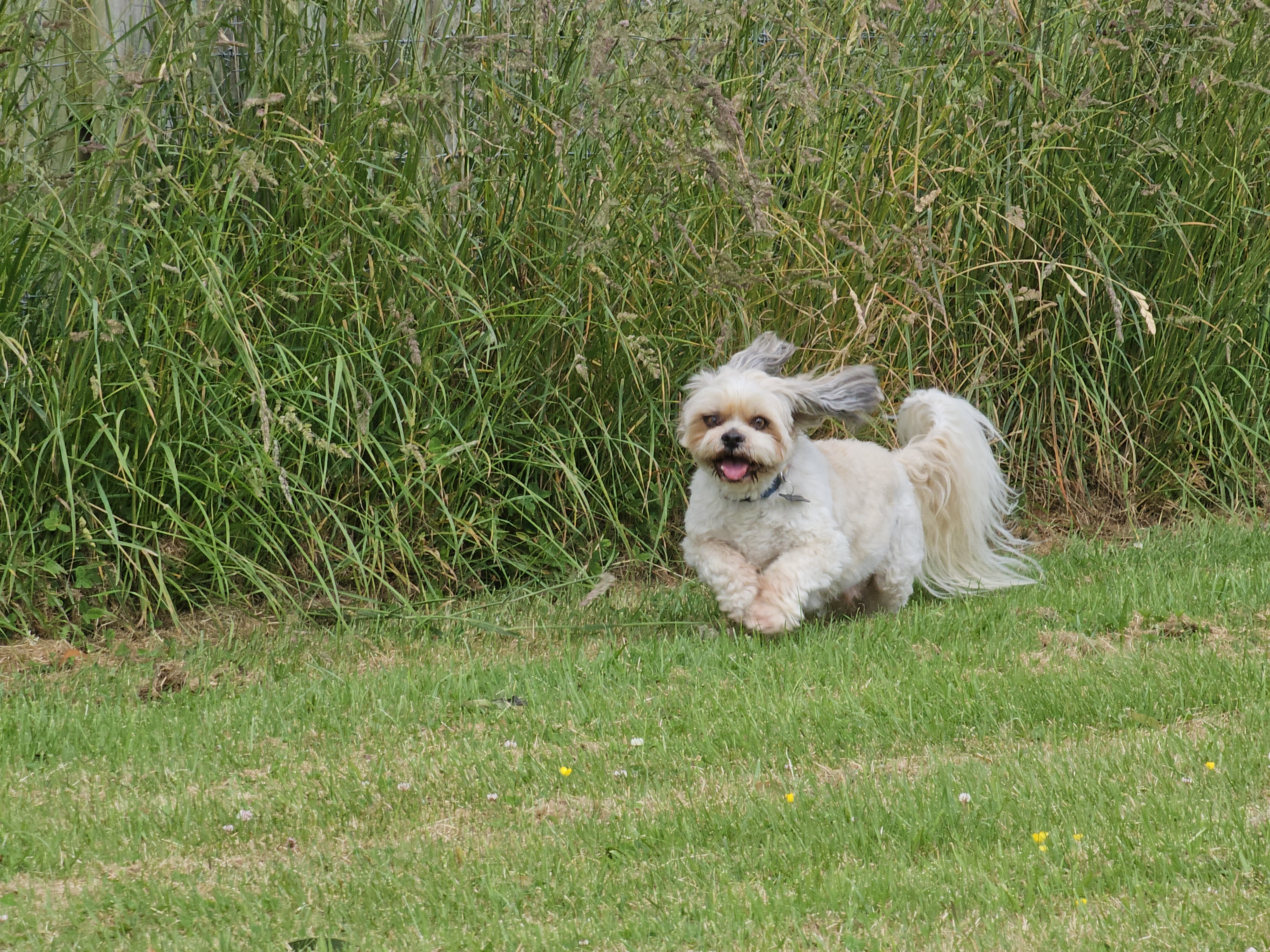 We off lead exercise all our dogs at Paddock Park, it is the highlight of their day. Paddock Park is where our kennel name originates and it's over an acre of lawn with a maze of long soft grass for exploring.